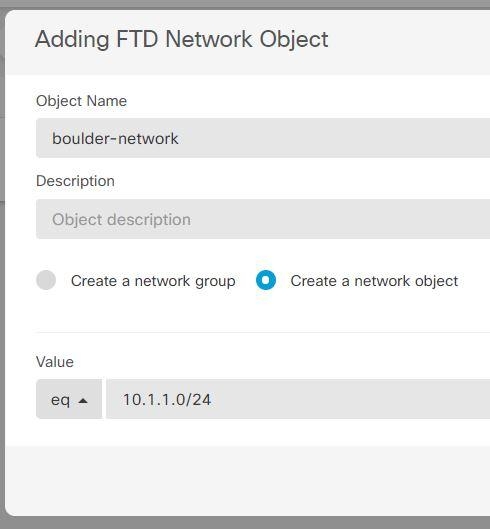 • If there is more than one local network in the connection, create a network object group to hold the objects that define the networks.